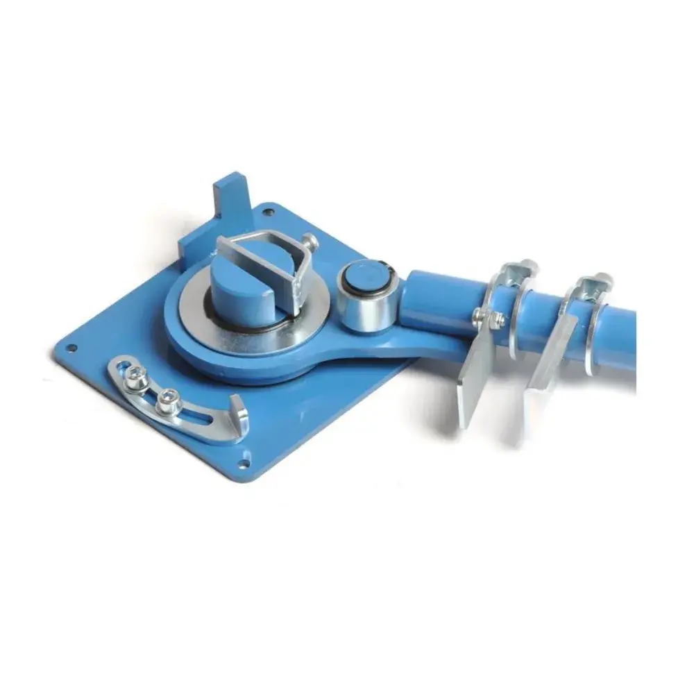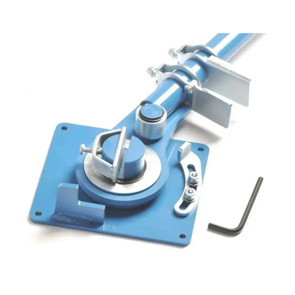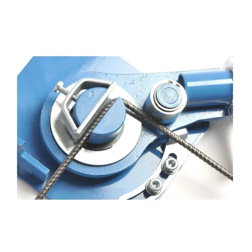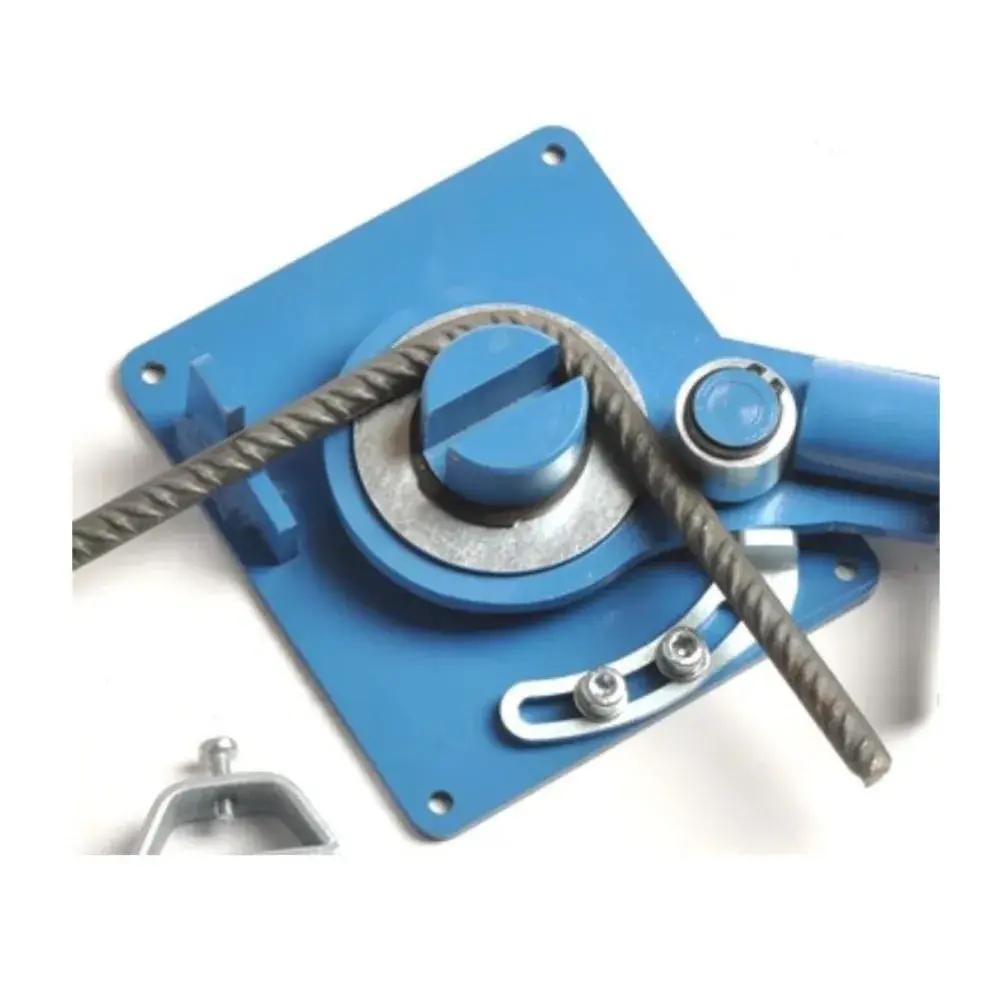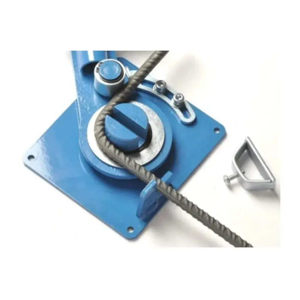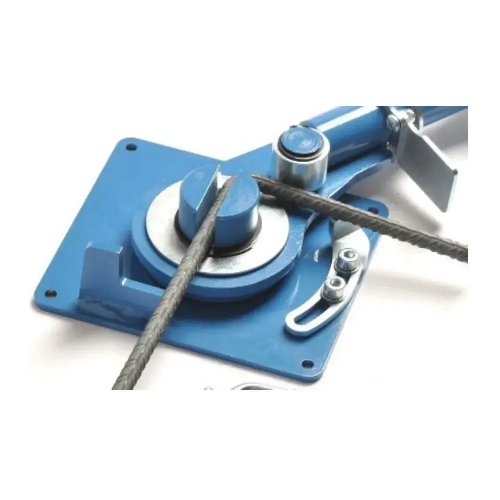 High precision and very sturdy bending tool. Can bend smooth bars up to 12 mm in diameter, ribbed bars up to 14mm in diameter, and flat metal profiles. It features a bending limiter and a length limiter. Bars can be bent in the groove and in the core.